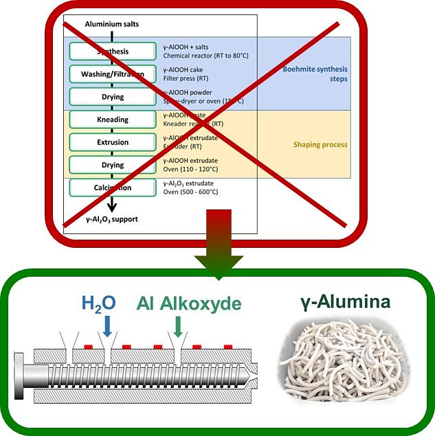 Dassie, P.-I., Haddad, R., Lenez, M., Chaumonnot, A., Boualleg, M., Legriel, P., … Boissiere, C. (2023). Coupling of solvent-free synthesis and reactive extrusion of alumina: an ecologically efficient integration for heterogenous catalyst synthesis. Green Chemistry, 25, 2800–2814. https://doi.org/10.1039/d2gc04714d
